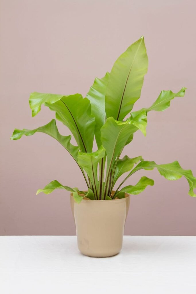 The Bird’s Nest Fern has broad, bright green leaves that form a rosette resembling a bird’s nest. You’ll appreciate its tropical look and moderate size for indoor spaces.