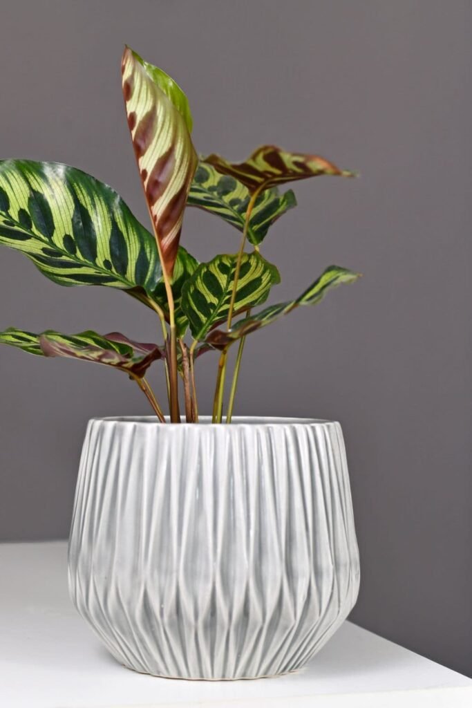 Water regularly but avoid waterlogging. Feed your plant every two weeks during spring and summer to support healthy development. The Prayer Plant is suitable for beginners due to its manageable care needs.