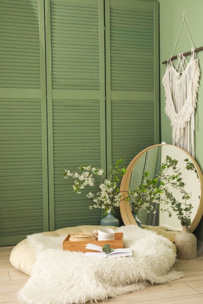 Olive and sage green accents can bring a foresty feel to your bedroom without being too bold or overpowering.