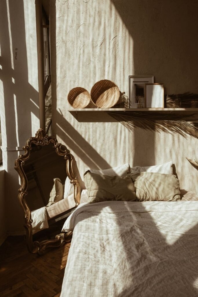 Think platform beds or low-slung nightstands to keep the vibe grounded—literally. It also helps a small room feel more open.
