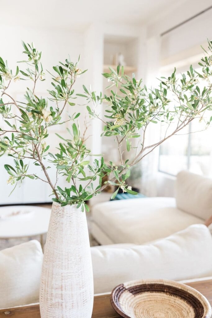 Styling tip: A tall plant in a simple pot by the corner adds height and freshness.
