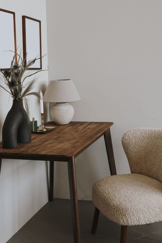 Why it works: Neutral colors reflect light and keep the focus on shape and texture, not clutter.